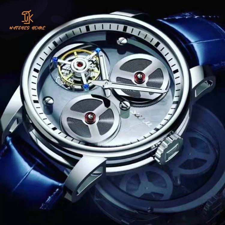 นาฬิกาข้อมือ Tourbillon แบบใสอะไหล่เคลื่อนไหวอัตโนมัติ