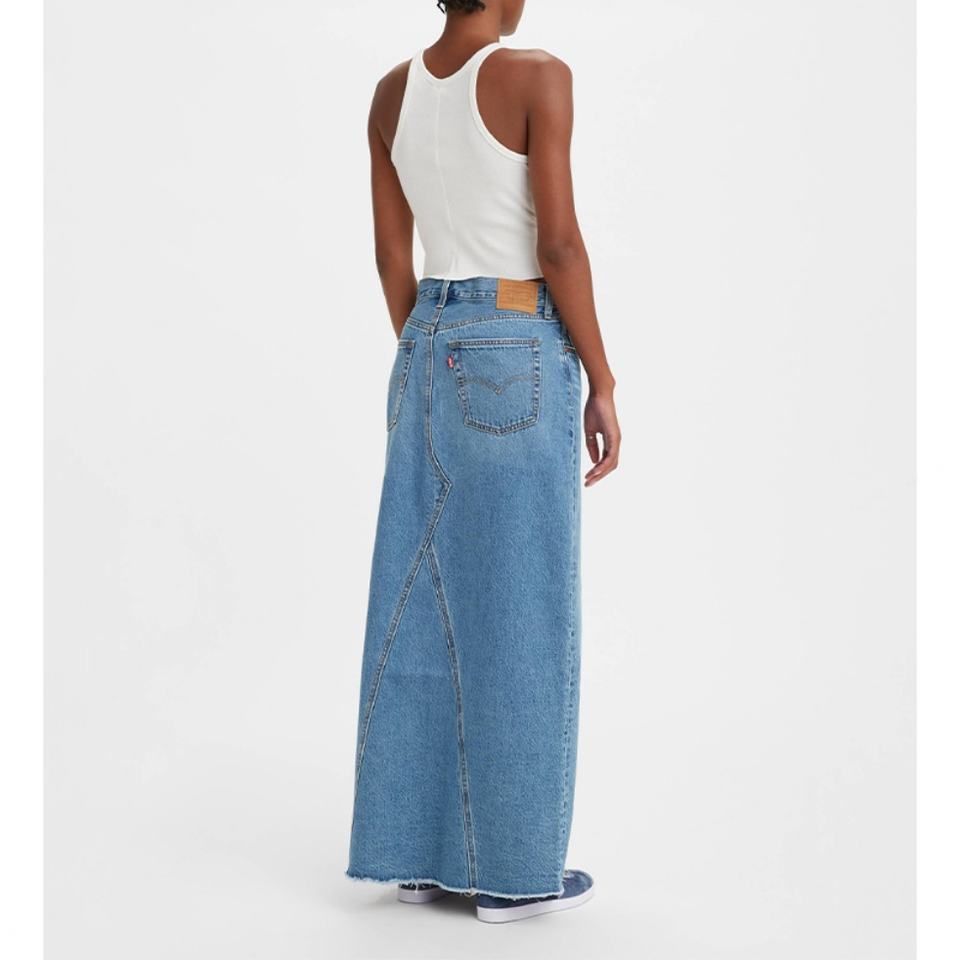 กระโปรงสั่งตัดสำหรับผู้หญิง ผ้าฝ้ายคุณภาพสูง ผ้าเดนิมสีน้ำเงินฟอกสไตล์วินเทจ กระโปรงยาวทรงแม็กซี่สำหรับผู้หญิง