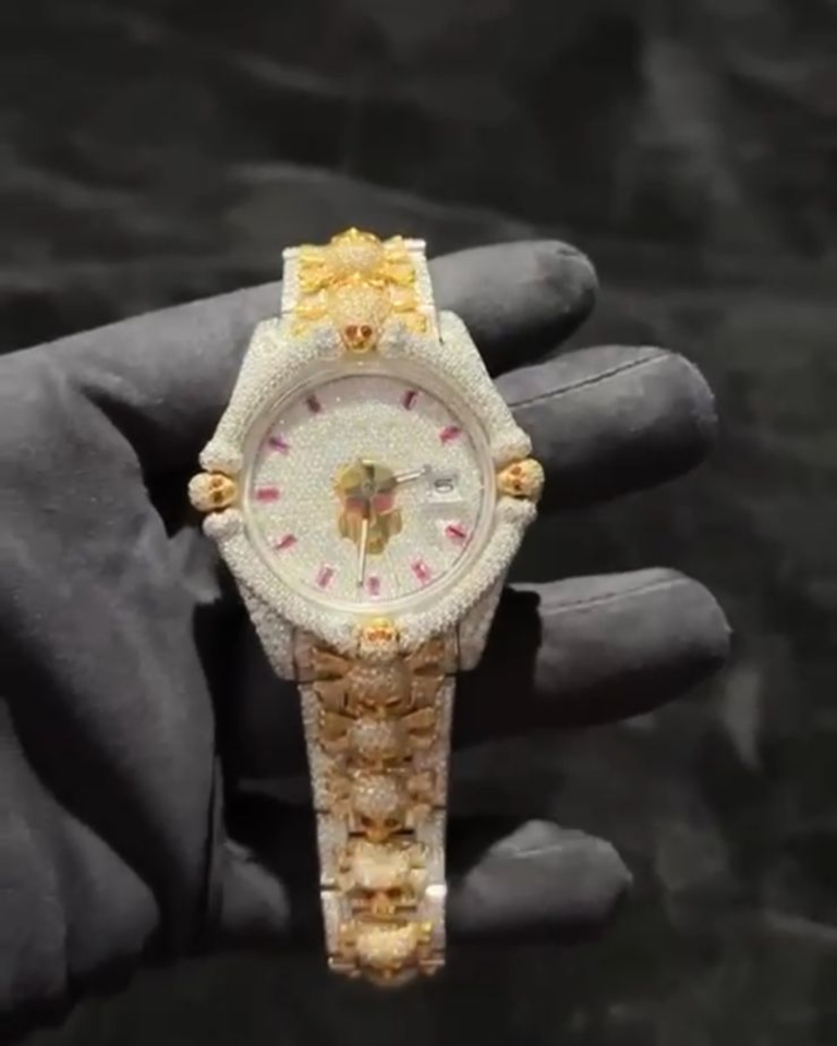 นาฬิกาเพชรโมอิสซาไนต์รูปหัวกะโหลกแบบกำหนดเอง ประดับเพชรเต็มเรือน นาฬิกาฮิปฮอปสุดหรู