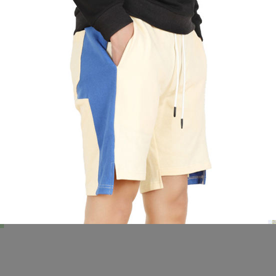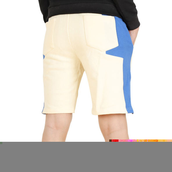 กางเกงขาสั้นสำหรับผู้ชายผ้าโพลีเอสเตอร์100% ยืดหยุ่นเอวแบบลำลองสีเบจและสีน้ำเงิน