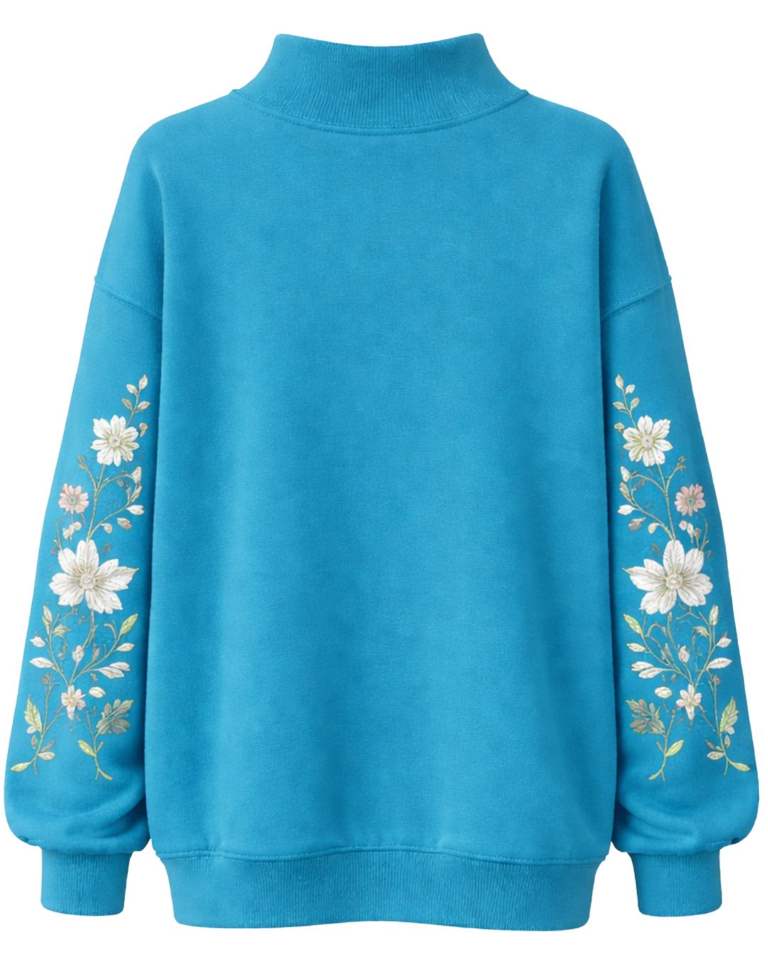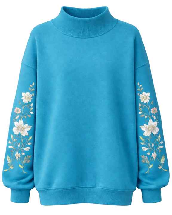 เสื้อสเวตเชิ้ตผู้หญิงสีฟ้าพาสเทลทรงโอเวอร์ไซส์ ผ้าฟลีซ คอสูง ปักลายดอกไม้ สไตล์ลำลอง สำหรับฤดูหนาว ผลิตจากผ้าฝ้ายผสมโพลีเอสเตอร์ อุ่นสบาย