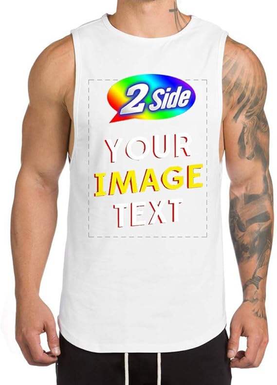 เสื้อยืดแขนกุดแบบสั่งตัดด้านหน้าและด้านหลังเพิ่มการออกแบบของคุณข้อความดีไซน์สุดเท่เสื้อสำหรับยิม
