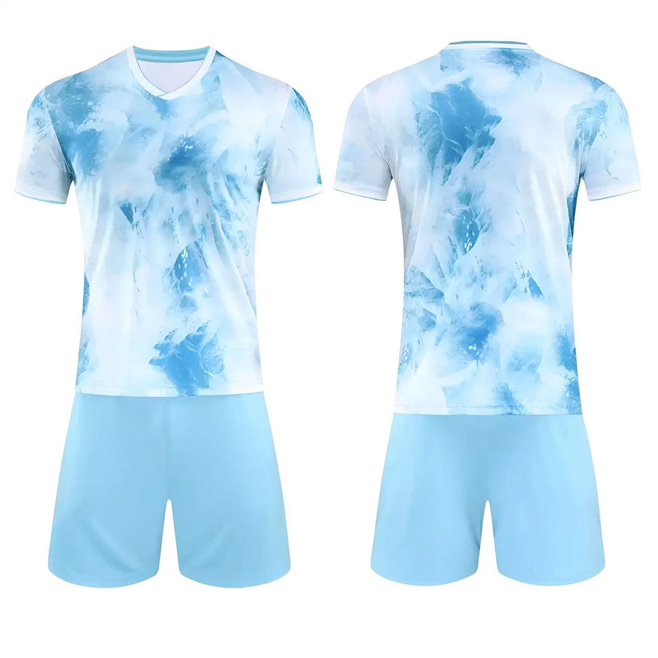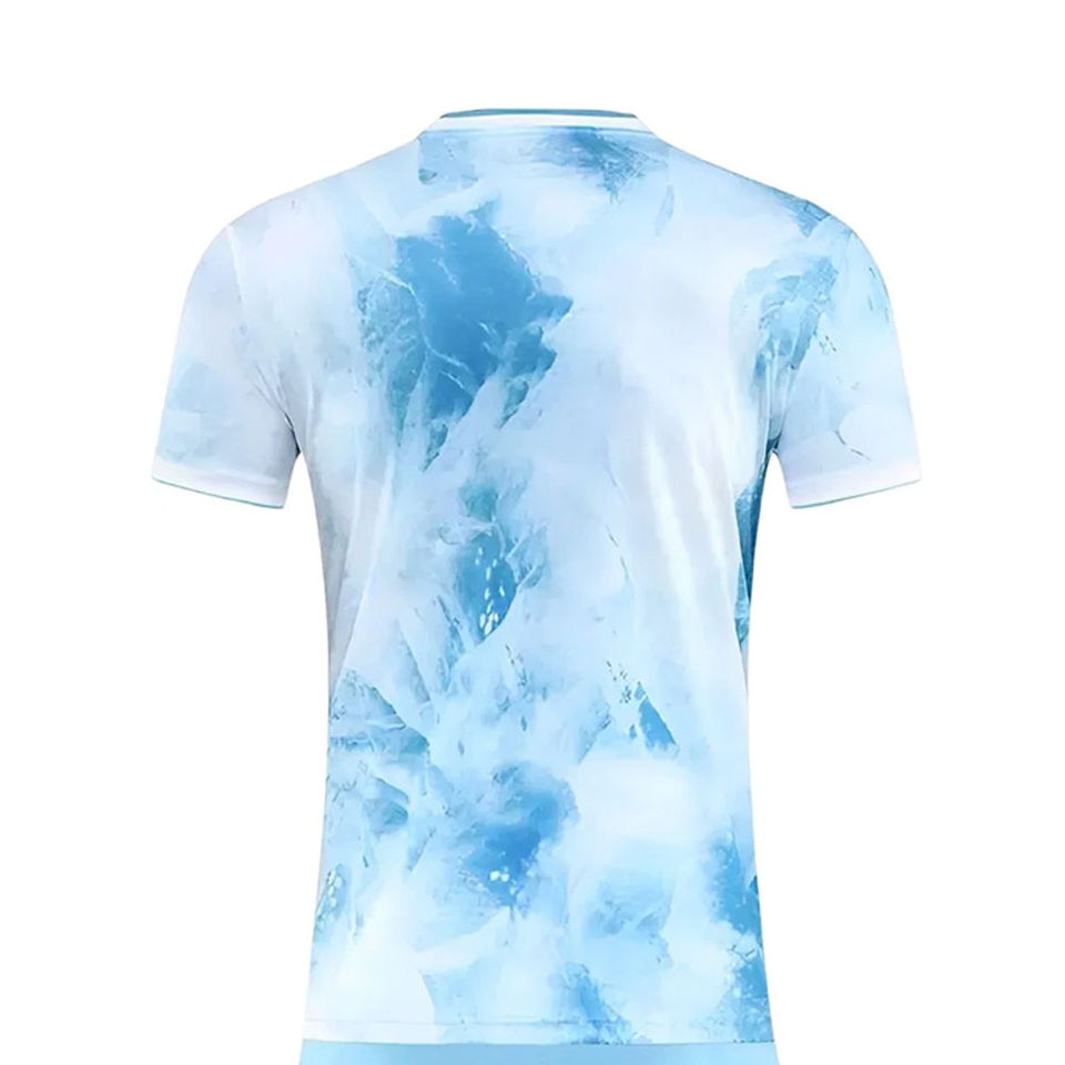 ชุดฟุตบอลฤดูร้อนแบบสลิมฟิต แห้งเร็ว พิมพ์ลายด้วยความร้อน โพลีเอสเตอร์ 100% แขนสั้น