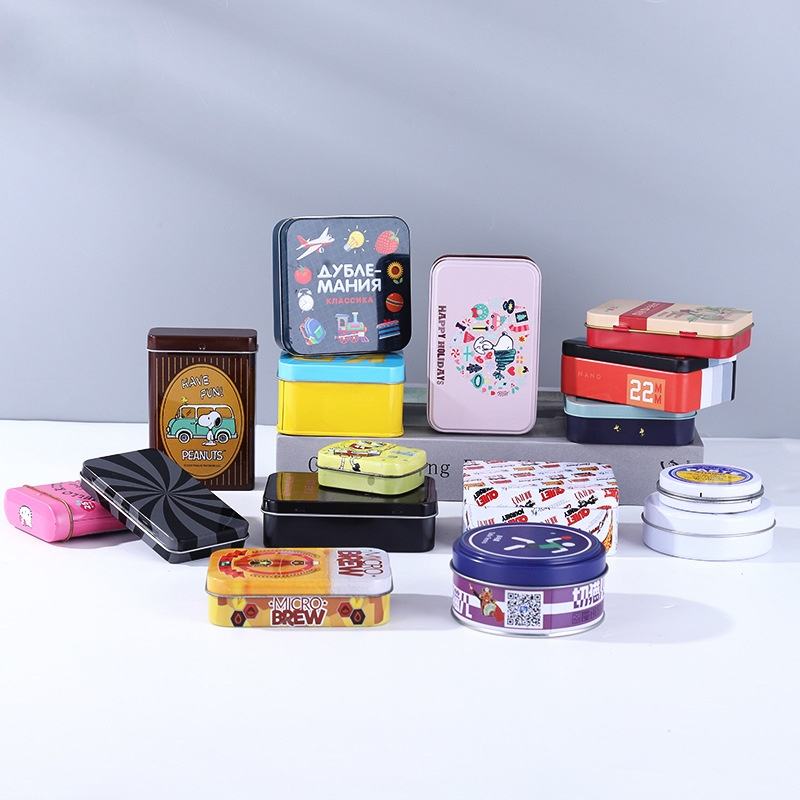 กล่องดีบุกโลหะเกรดอาหารขนาดเล็กที่มีฝาเกลียวทรงสี่เหลี่ยมสำหรับกรรไกรตัดเล็บชุดเครื่องมือและเก็บขนม