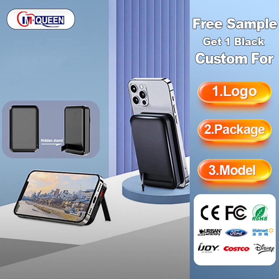 พาวเวอร์แบงค์แม่เหล็กพกพาขนาดเล็กแบบกำหนดเอง 5000mah/10000mah ชาร์จเร็ว ไร้สาย สำหรับใช้งานกลางแจ้ง