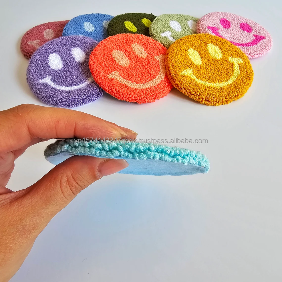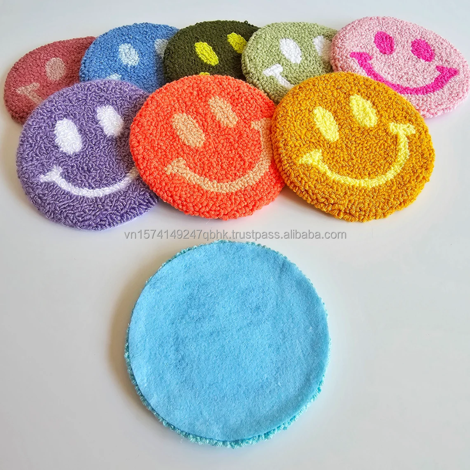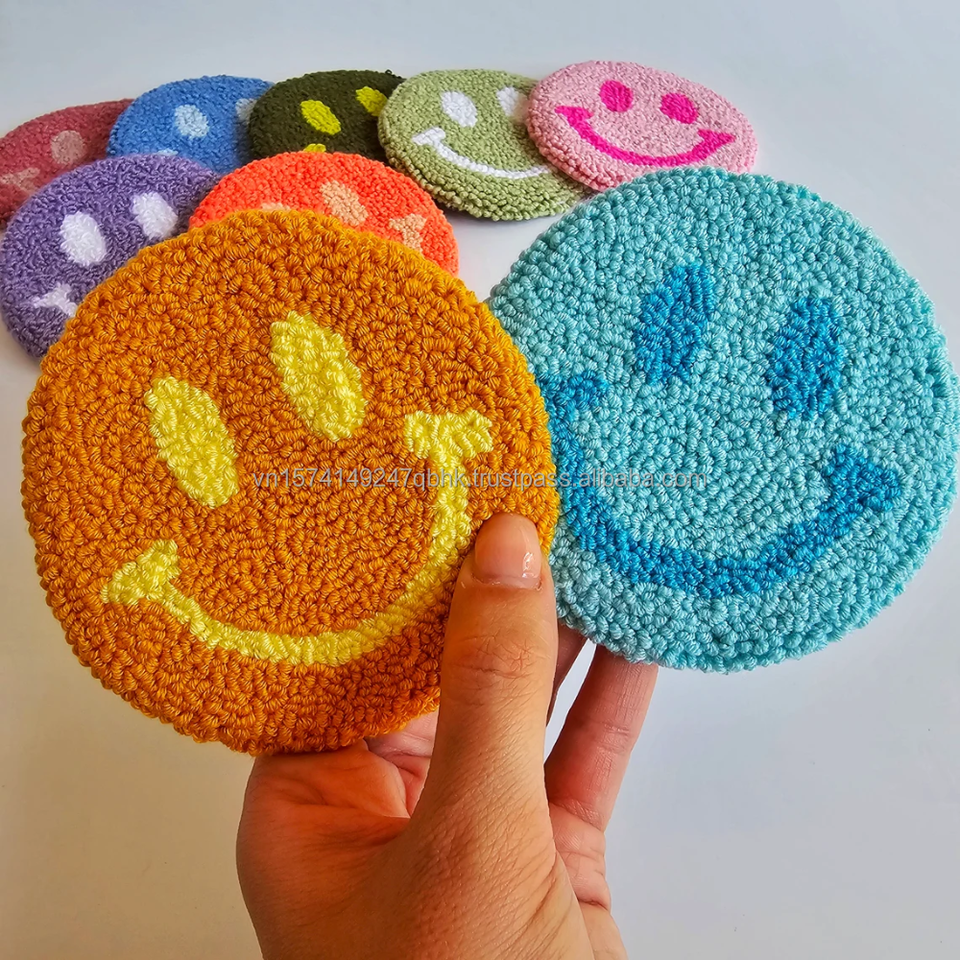 ที่รองแก้วแบบเข็มเจาะรูปยิ้มแบบกำหนดเองได้ถาดรองแก้วแบบเข็มเจาะเครื่องดื่มขนาดเล็กงานแฮนด์เมดตกแต่งบ้านที่รองแก้วแก้วรับประทานอาหารพรมแบบ DIY