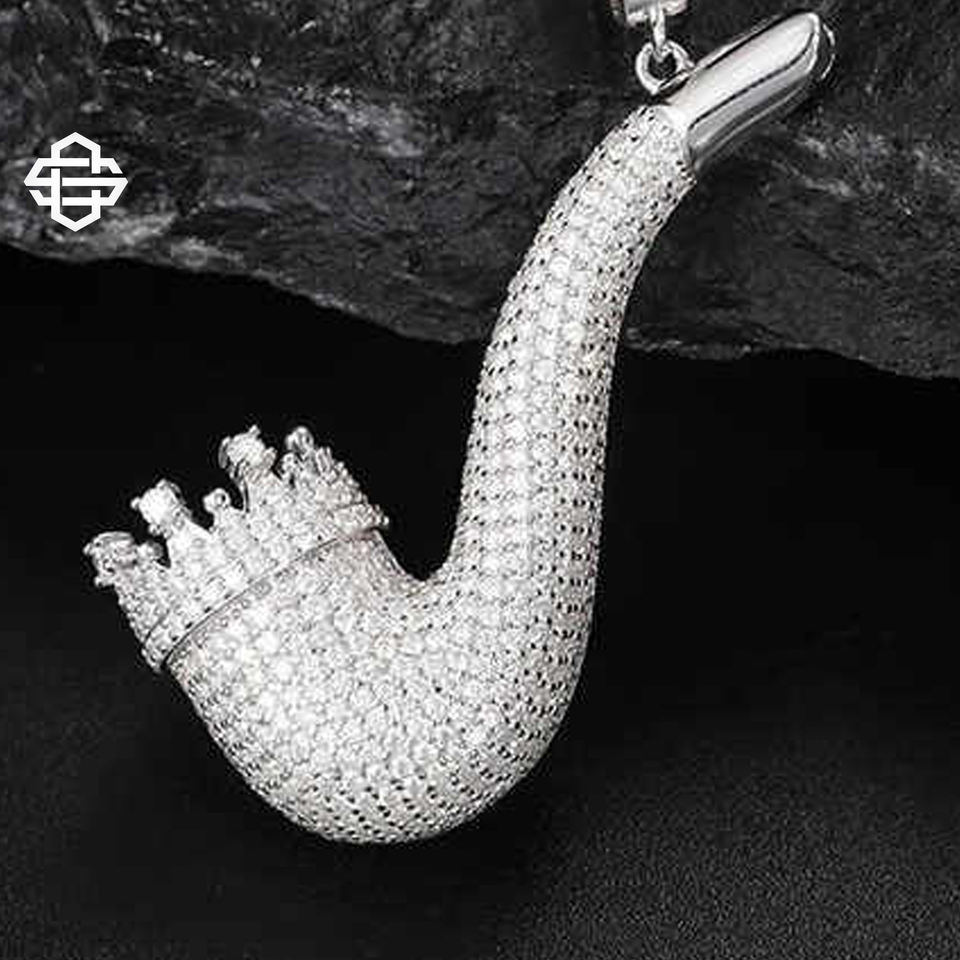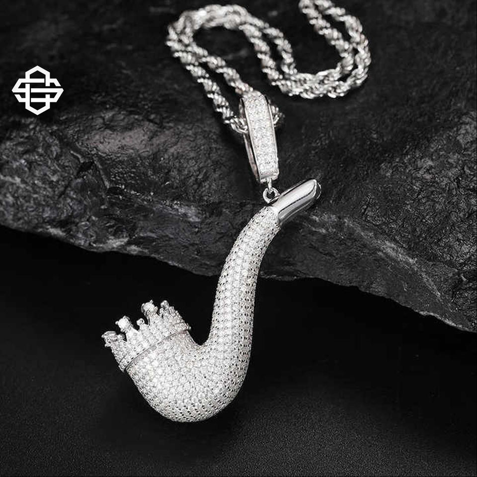จี้ท่อสูบบุหรี่แบบสั่งทำสร้อยคอเพชรฮิปฮอปเครื่องประดับสไตล์ฮิปฮอปทำจากโลหะอัลลอยสำหรับผู้ชายสไตล์สตรีทแวร์