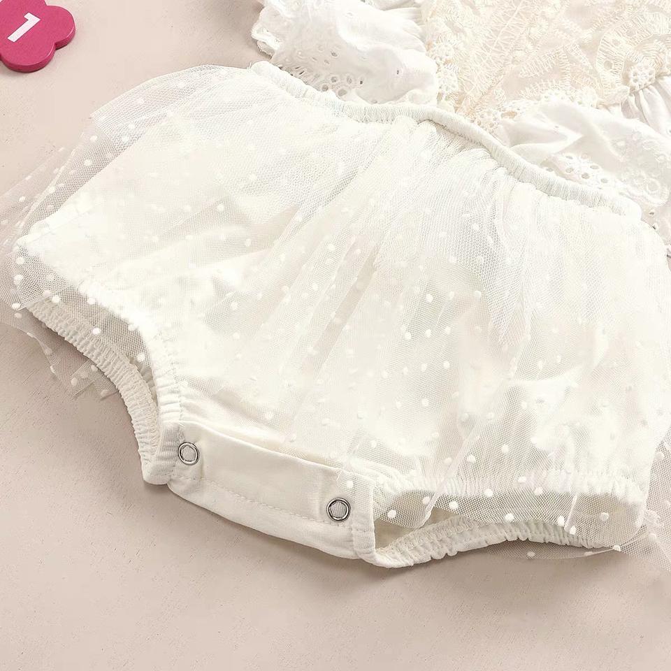 ชุดเดรสเด็กผู้หญิงแขนกุดผ้าลูกไม้ทูลล์ติดกระดุมแบบสแนปสำหรับฤดูร้อน ชุดรอมเปอร์เด็กแรกเกิด
