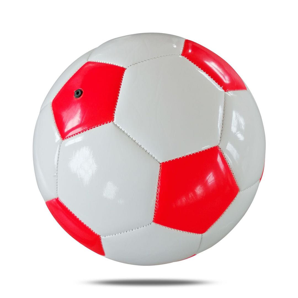 ลูกฟุตบอลแบบกำหนดเอง สีขาวแดง ดีไซน์แผ่นสี สำหรับฝึกซ้อมและแข่งขัน ทนทาน ผลิตจากวัสดุ PU ขนาดมาตรฐานระดับมืออาชีพ