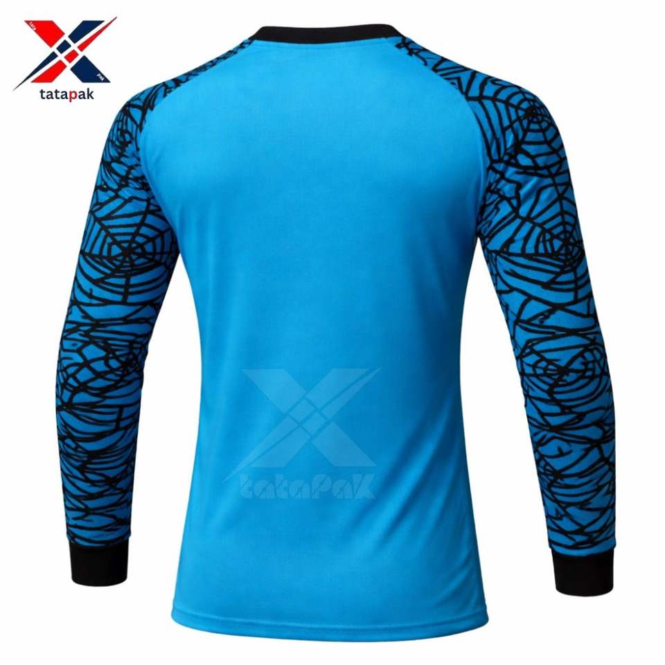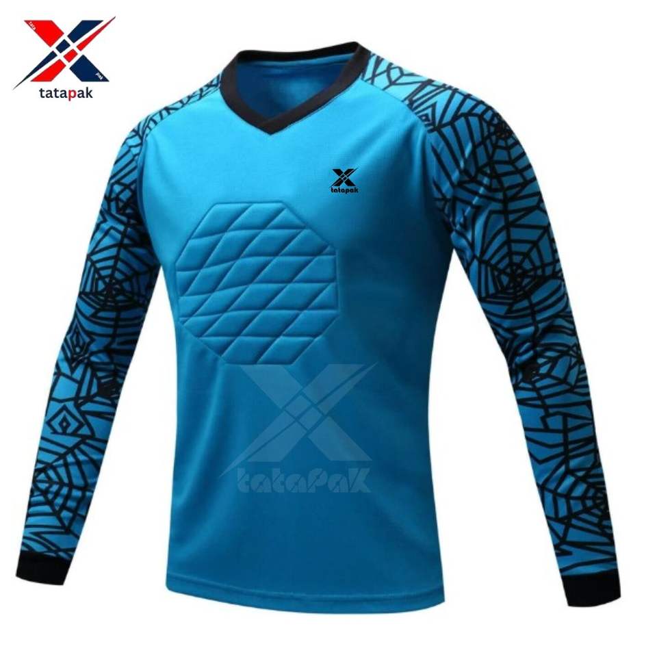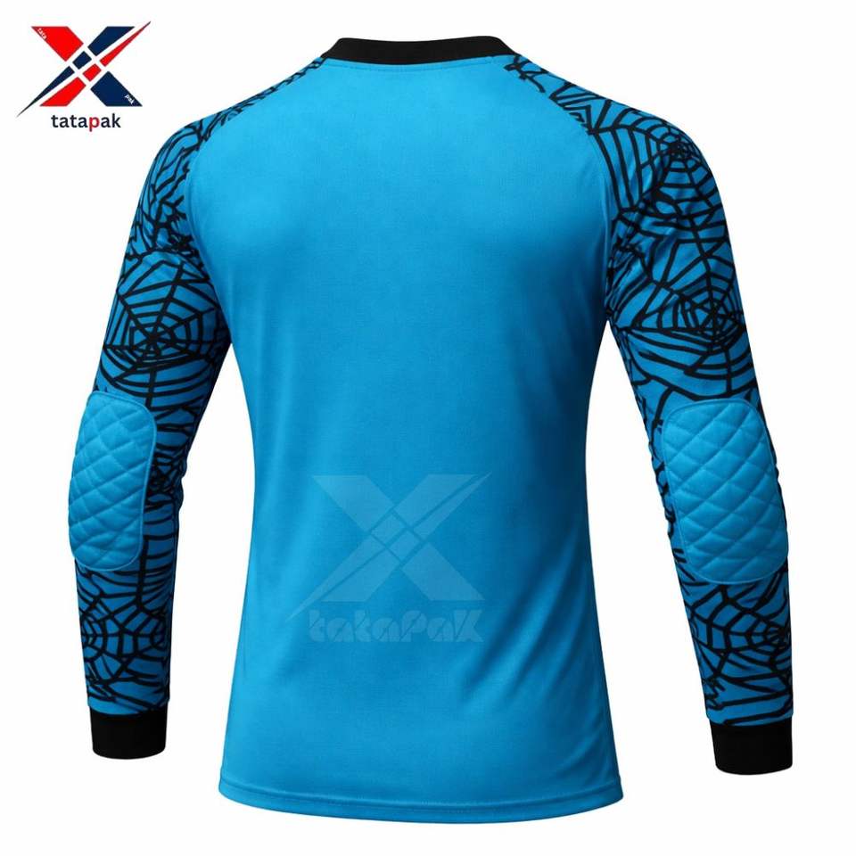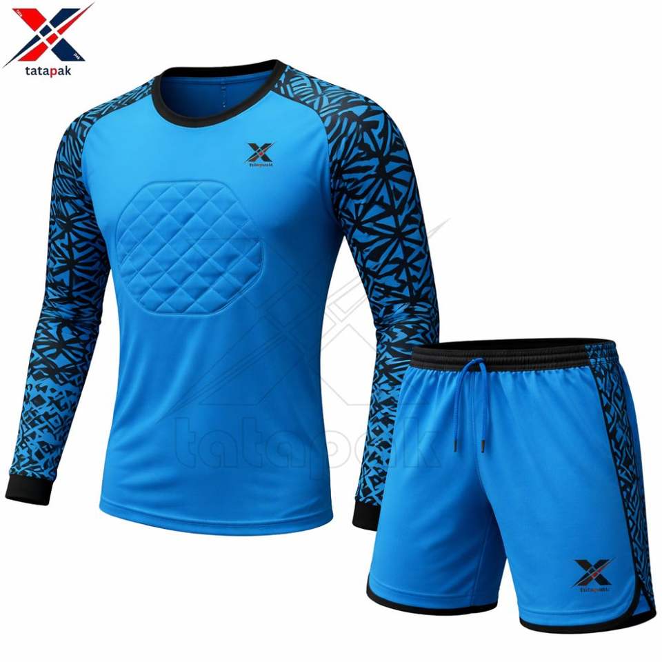ชุดผู้รักษาประตูฟุตบอลแบบกำหนดเอง เสื้อแขนยาวแบบมีแผ่นรองและกางเกงขาสั้น ชุดฟุตบอลสำหรับผู้รักษาประตูแบบซับลิเมชั่น