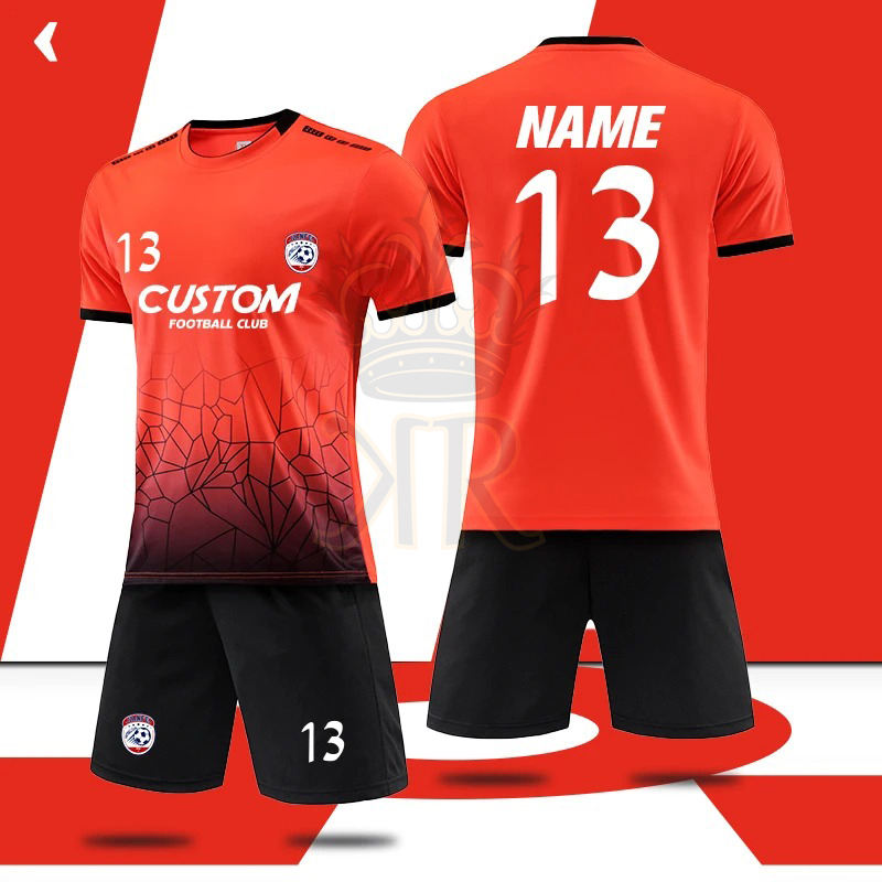ชุดเสื้อฟุตบอลออกแบบได้ตามต้องการวัสดุแบบอินเตอร์ล็อคระบายอากาศได้พิมพ์หมายเลขเสื้อทีมฟุตบอลใส่ได้ทั้งชายและหญิง