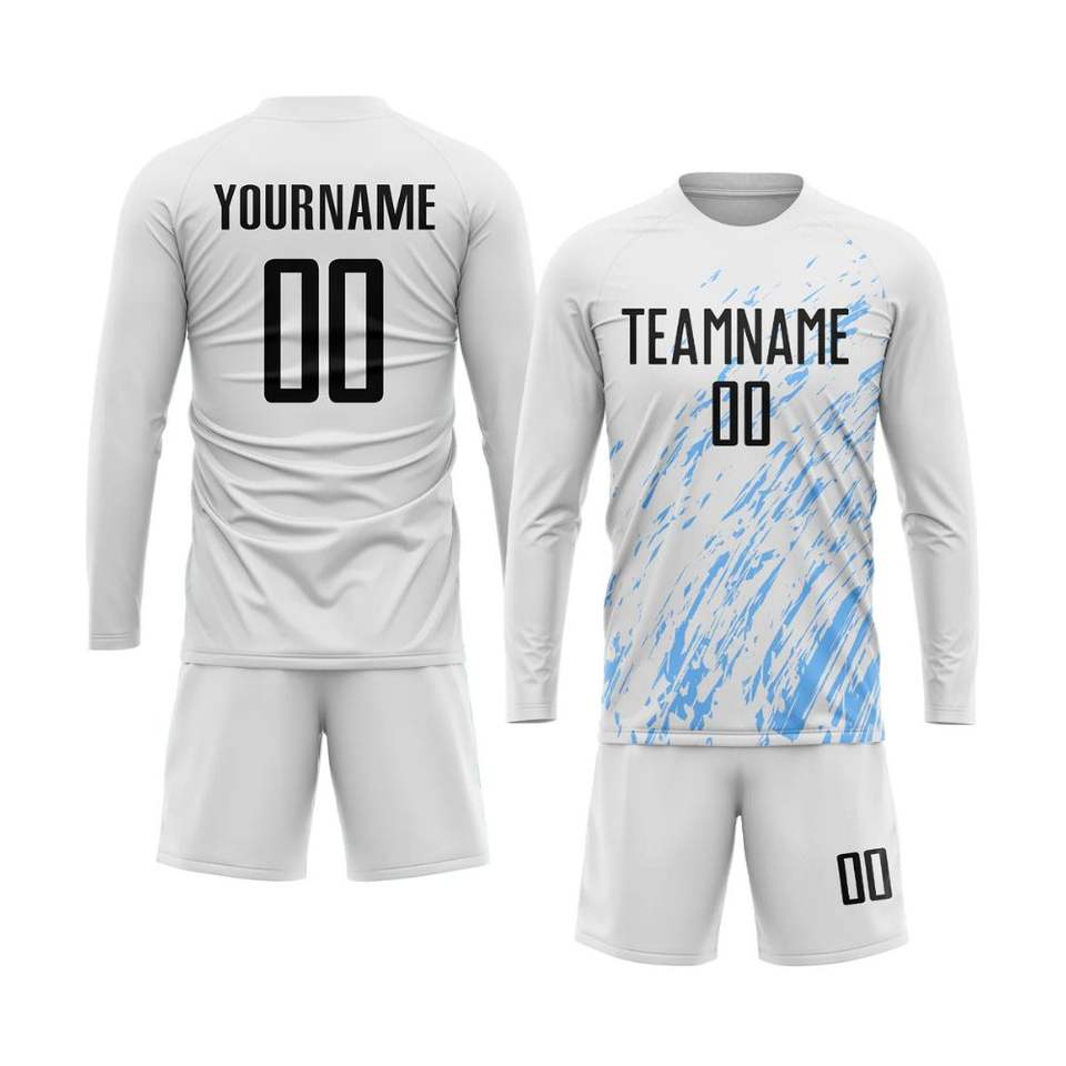 ชุดเสื้อฟุตบอลแบบกำหนดเอง แขนยาว ชุดยูนิฟอร์ม ชื่อทีมและหมายเลขส่วนตัว ระบายอากาศได้ดี ชุดฝึกซ้อมและแข่งขัน สำหรับผู้ชาย เด็ก และมืออาชีพ