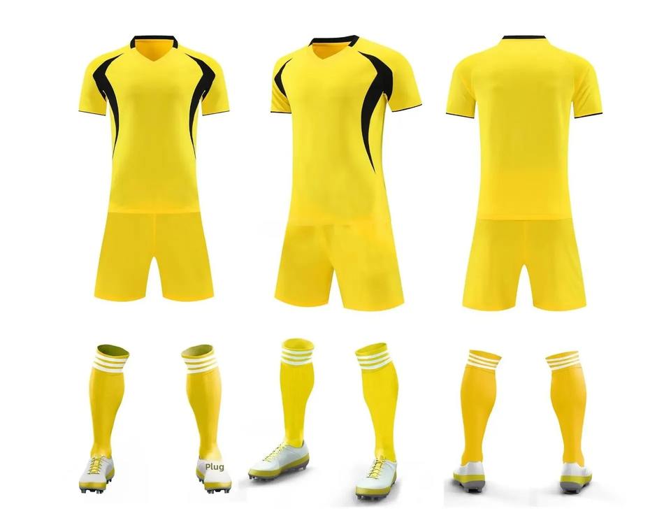 ชุดเสื้อฟุตบอลแบบกำหนดเองพร้อมหมายเลขสำหรับผู้ชาย ราคาประหยัด เสื้อฟุตบอลสีเหลืองและสีเขียว ชุดฟุตบอลแบบกำหนดเอง