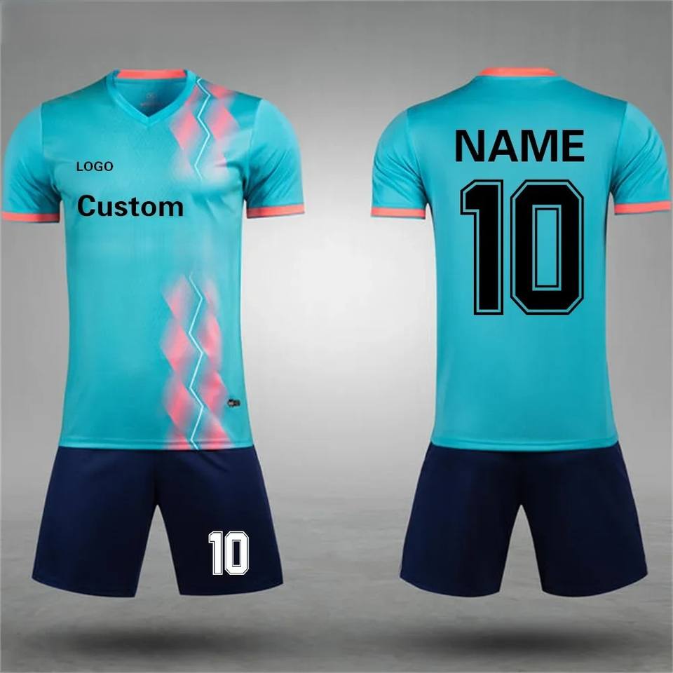ชุดเสื้อฟุตบอลแบบกำหนดเองพร้อมสีของทีมหมายเลขชื่อแบบระเหิดสำหรับผู้เล่นและโค้ชพร้อมโลโก้สโมสร