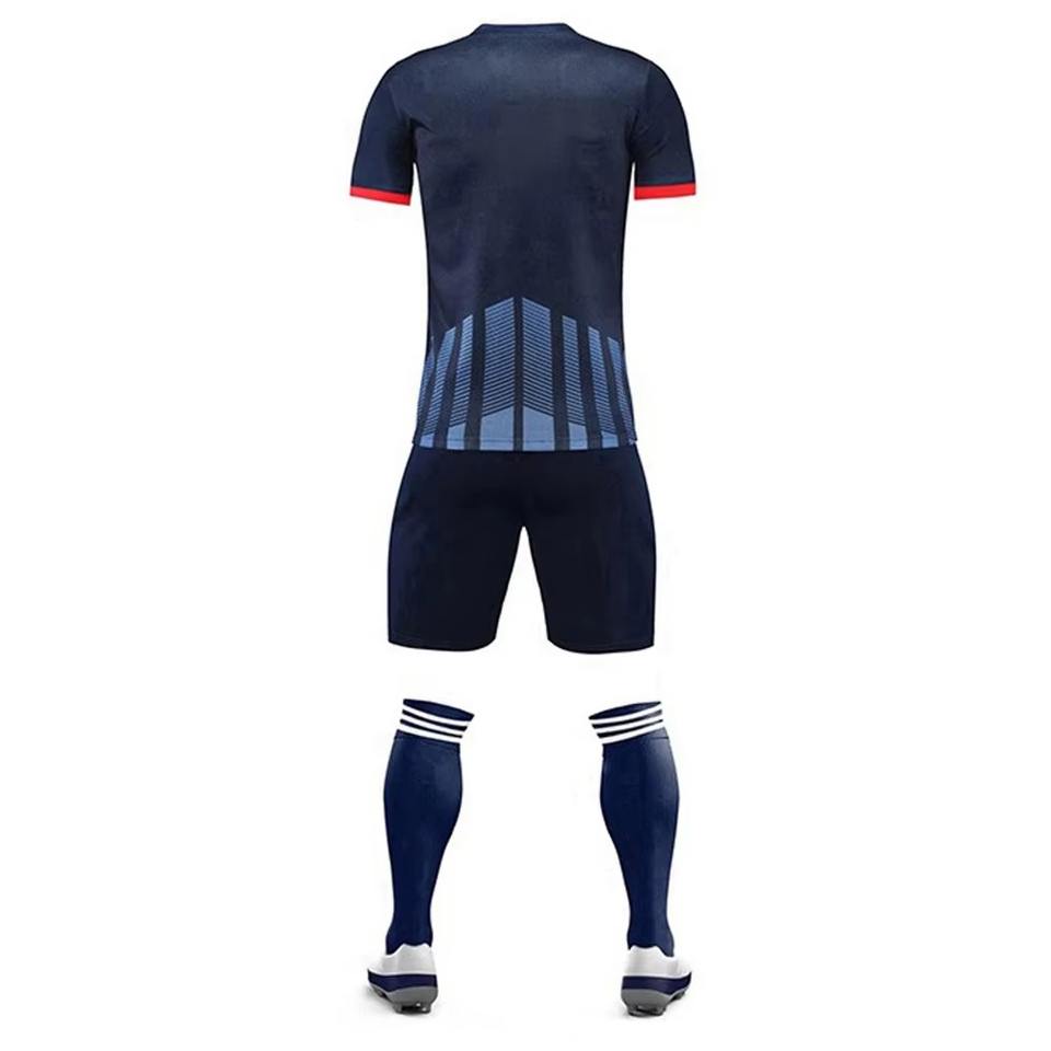 ชุดเสื้อและกางเกงฟุตบอลแบบกำหนดเองพร้อมวัสดุที่มีน้ำหนักเบา เย็บตะเข็บเสริมความแข็งแรง แผงระบายอากาศ และสวมใส่สบายสำหรับนักกีฬา