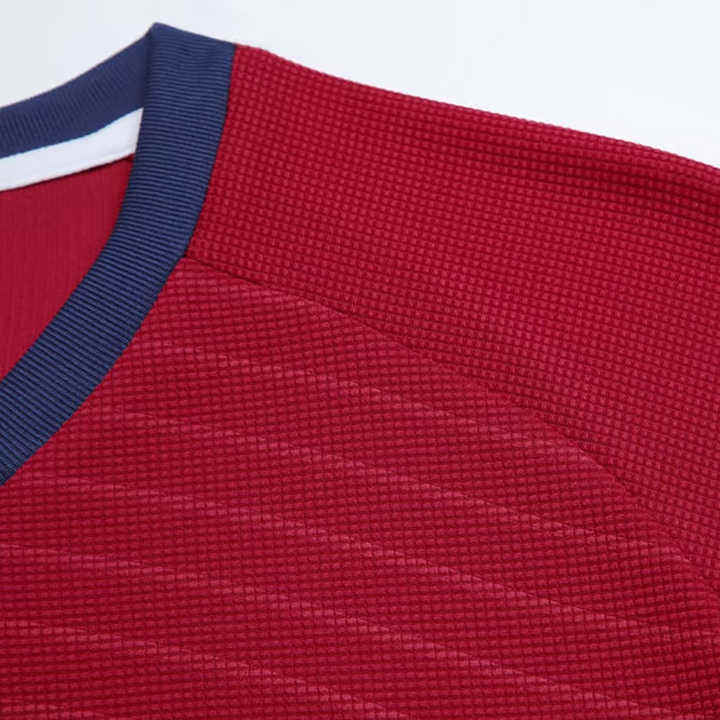 ตำแหน่งโลโก้:ด้านหน้า, ด้านหลัง, แขนเสื้อด้านซ้าย, แขนเสื้อด้านขวา, ขอบล่าง, หลังคอ