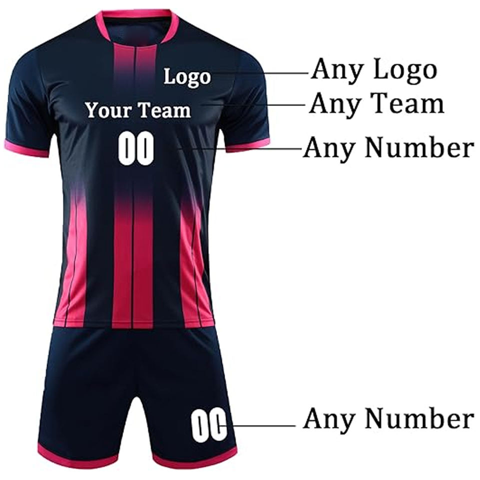 ชุดยูนิฟอร์มฟุตบอลแบบกำหนดเอง พิมพ์ลาย ระบายอากาศ แห้งเร็ว ไซส์ใหญ่ เสื้อเจอร์ซีย์โพลีเอสเตอร์พร้อมกางเกงขาสั้น ชุดกีฬา ผลิตโดยโรงงาน OEM