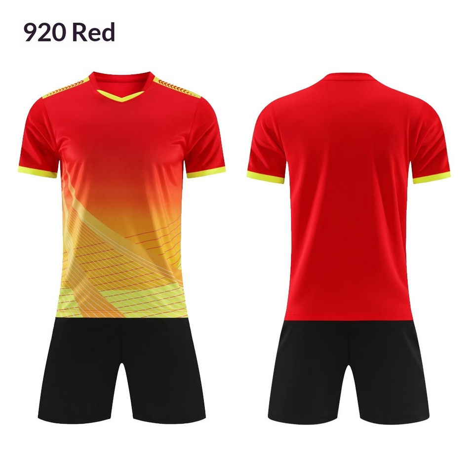 ชุดยูนิฟอร์มฟุตบอลแบบกำหนดเองสำหรับผู้ใหญ่ ชุดเสื้อและกางเกงขาสั้นผ้าตาข่ายไล่เฉดสี ผู้ผลิตขายส่งแบบ OEM