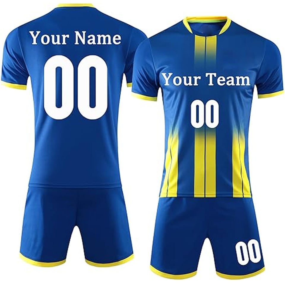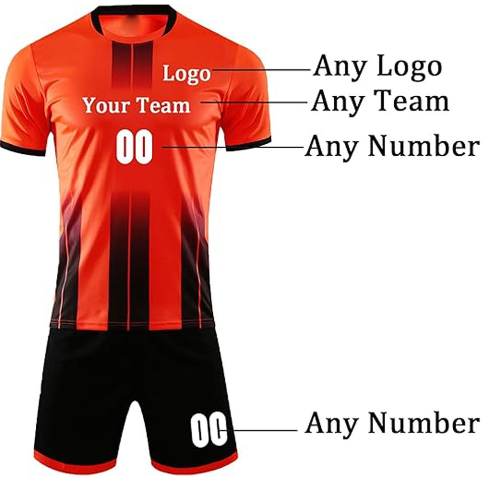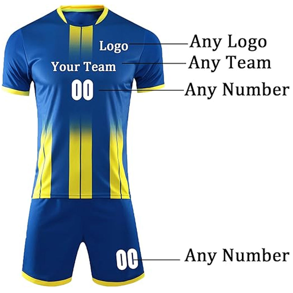 ชุดฟุตบอลสั่งทำพิเศษ ระบายอากาศ แห้งเร็ว ไซส์ใหญ่ เสื้อโพลีเอสเตอร์ กางเกงขาสั้น ชุดทีมพิมพ์ลายแบบซับลิเมชั่น ชุดกีฬา OEM