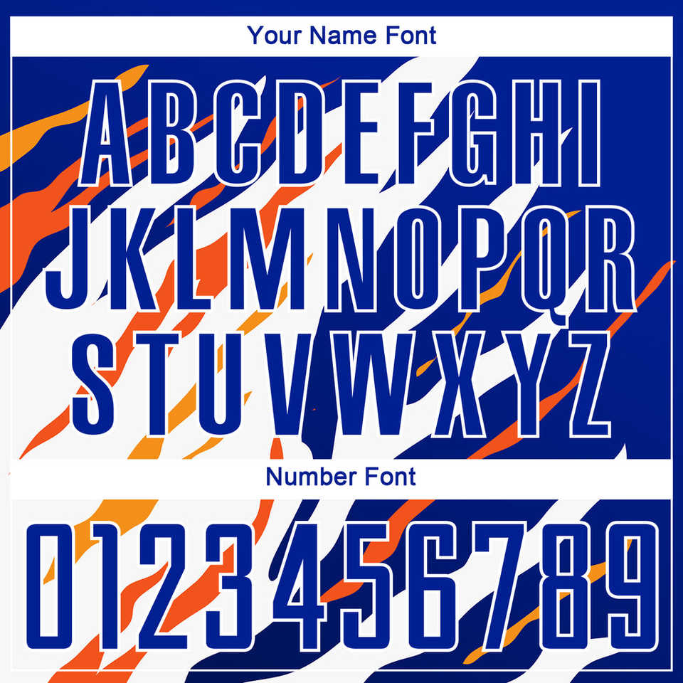 ชุดฟุตบอลผู้ชายสีน้ำเงินส้มแบบกำหนดเอง ชุดเสื้อฟุตบอลแบบซับลิเมชั่นพร้อมโลโก้ ชื่อ และหมายเลขส่วนตัว รับผลิตแบบ OEM