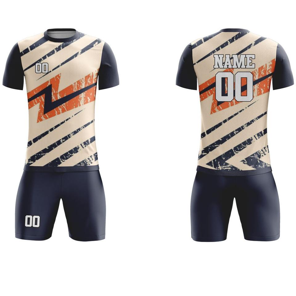 ชุดฟุตบอลแขนสั้นแบบกำหนดเองพร้อมผ้าโพลีเอสเตอร์ 100% แห้งเร็ว สีและโลโก้ตามสั่งเพื่อประสิทธิภาพสูงสุดบนสนาม
