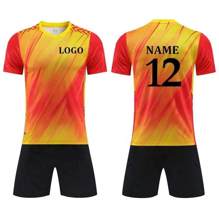 ชุดฟุตบอลแบบกำหนดเองสำหรับทีม เสื้อฟุตบอลและกางเกงขาสั้นระบายอากาศ ชุดกีฬาแห้งเร็ว
