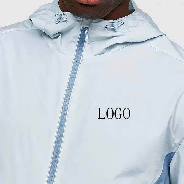 แจ็คเก็ตกันลมแบบมีฮู้ด น้ำหนักเบา สำหรับผู้ชาย ผลิตจากโพลีเอสเตอร์ ระบายอากาศ กันน้ำ เป็นมิตรกับสิ่งแวดล้อม ดีไซน์แบบแพทช์เวิร์ค รับผลิตตามแบบ OEM