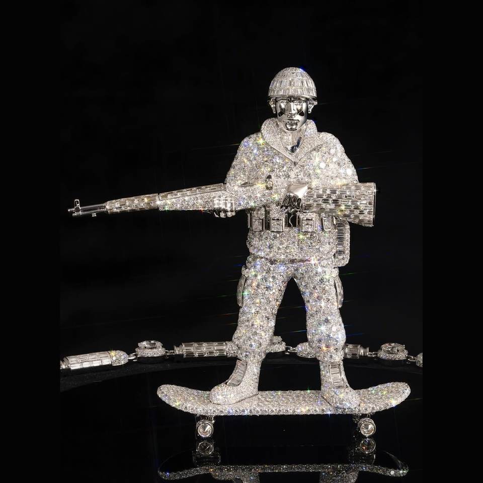 จี้รูปทหารแบบกำหนดเองบนสเก็ตบอร์ด | เงินแท้ 925 ชุบแบบเต็มตัว | เพชรโมอิสซาไนต์ VVS | เครื่องประดับฮิปฮอป