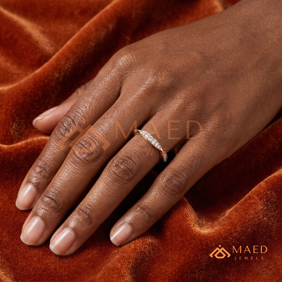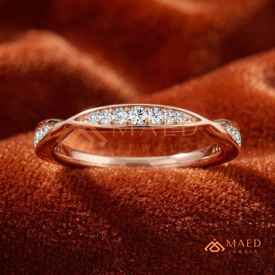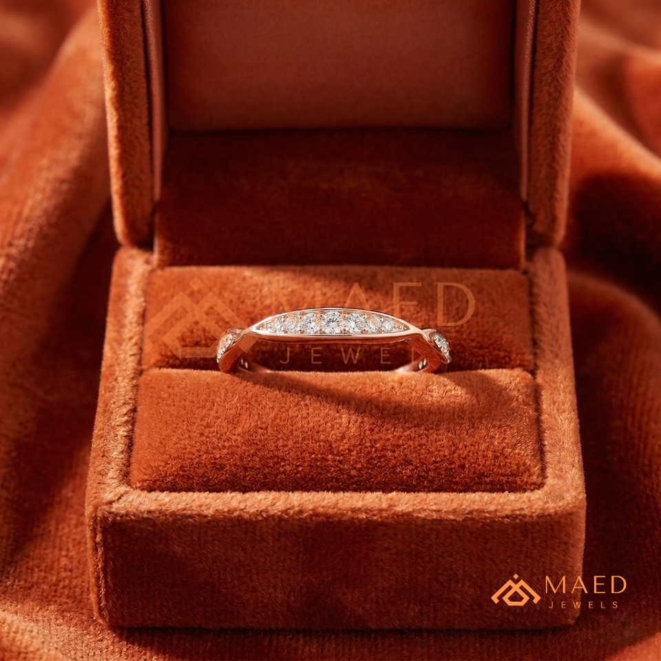 แหวนทองคำแท้ 10K/14K/18K โรสโกลด์ ประดับเพชรหลายเม็ด แบบสั่งทำพิเศษ | เพชรทรงเอเมอรัลด์ตรงกลาง ประดับเพชรทรงกลมบริลเลียนท์ด้านข้าง สำหรับงานแต่งงาน