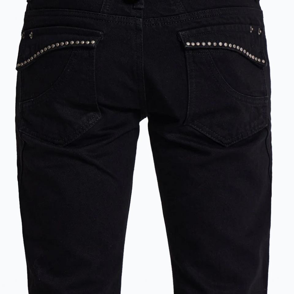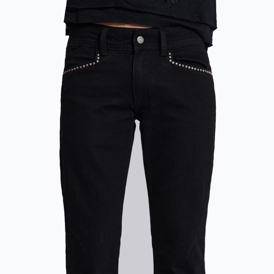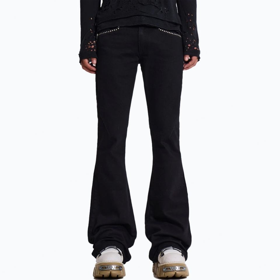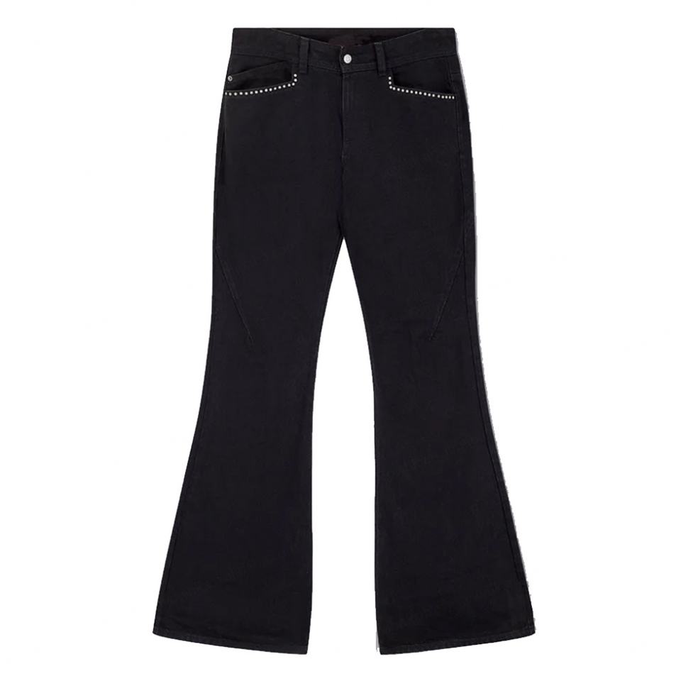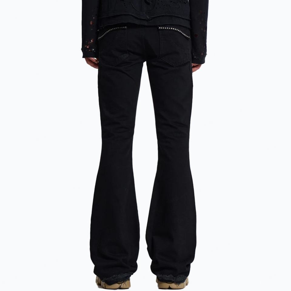 Custom Solid Black Flared Jeans Men Casual Studded Pockets 100%Cotton Denim Jeans Clean Fit Bootcut Jeans