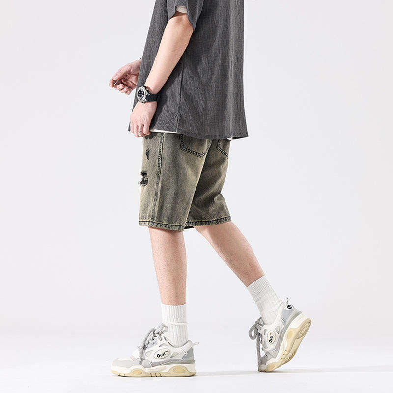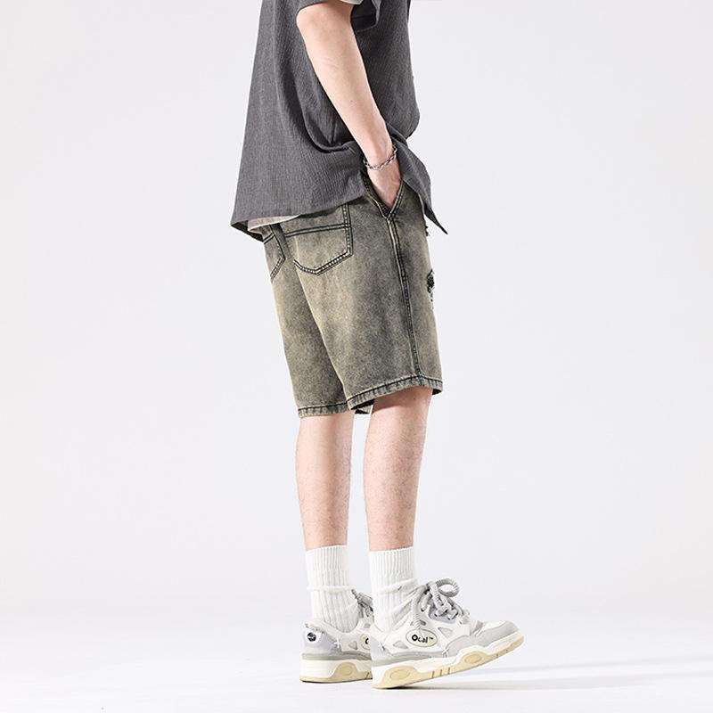 กางเกงยีนส์ขาสั้นผู้ชายสีพื้นแบบสบายๆ - คุณภาพสูง ผ้าฝ้าย 100% แห้งเร็ว สไตล์วินเทจฟอกสี ลุคซัมเมอร์
