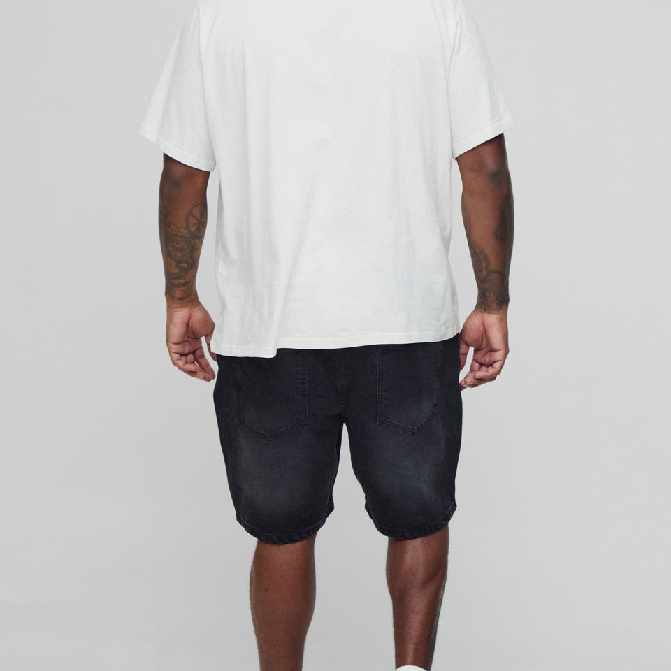 กางเกงขาสั้นผ้ายีนส์ของผู้ชายกางเกงขาสั้นผ้ายีนส์แนวสตรีทสีพื้นงานตามสั่ง