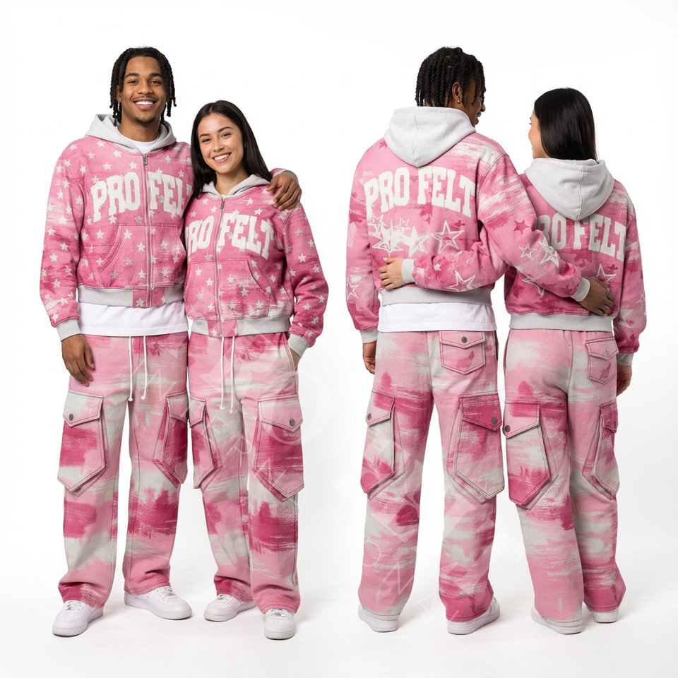 ชุดเซ็ตสองชิ้นสีเทาเรียบสไตล์สตรีทแวร์ พร้อมกระเป๋าอเนกประสงค์ ออกแบบลายกราฟิกตามสั่ง ขายส่ง OEM ชุดวอร์มแฟชั่น
