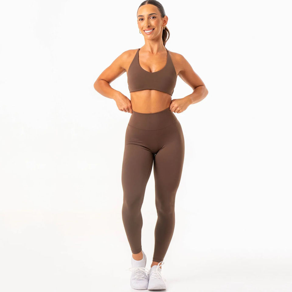 ชุดเลกกิ้งสครันช์ 2 ชิ้นสำหรับผู้หญิงไซส์พลัส แบบสั่งทำพิเศษ เอวสูง สายรัดเอวรูปตัววี ยืดได้ 4 ทิศทาง