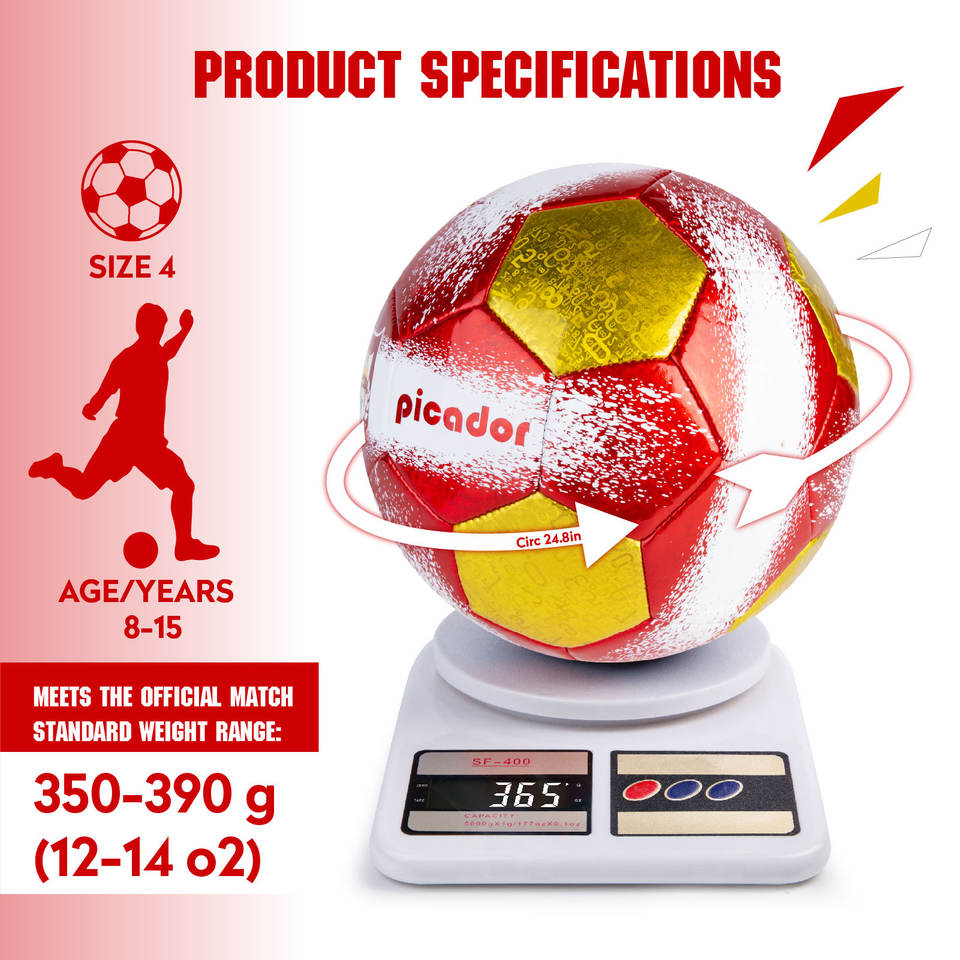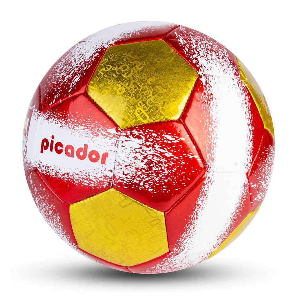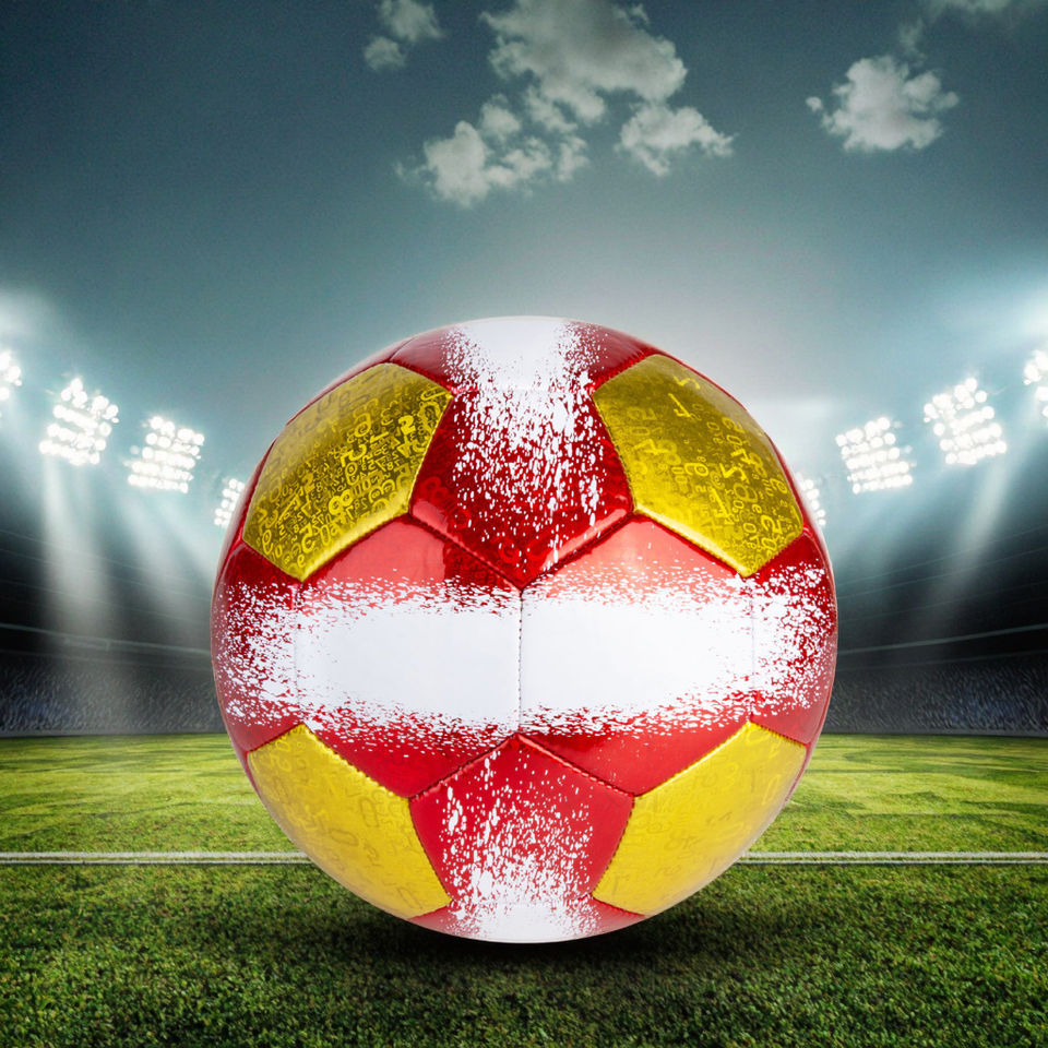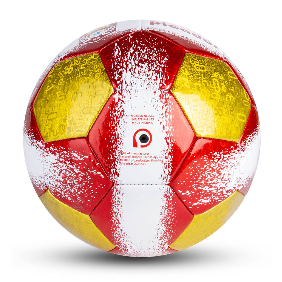 เครื่องยิงลูกฟุตบอลแบบธงสเปนงานตามสั่งเย็บเป็นมิตรกับสิ่งแวดล้อม PVC น้ำหนักเบาขนาด4สำหรับการฝึกซ้อมเยาวชนฟุตบอลสำหรับธีม