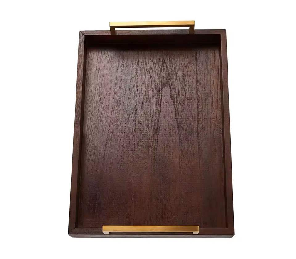 ถาดไม้อะคาเซียพร้อมที่จับถาดไม้อะคาเซียสำหรับใช้ในบ้านดีไซน์แบบวินเทจ