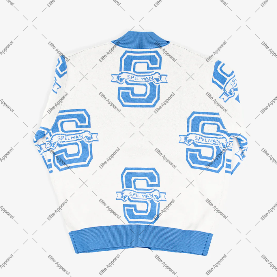 เสื้อสเวตเตอร์ถักพิมพ์ลายทั้งตัวสไตล์วิทยาลัย spelman เสื้อสเวตเตอร์ผ้าฝ้ายผสม