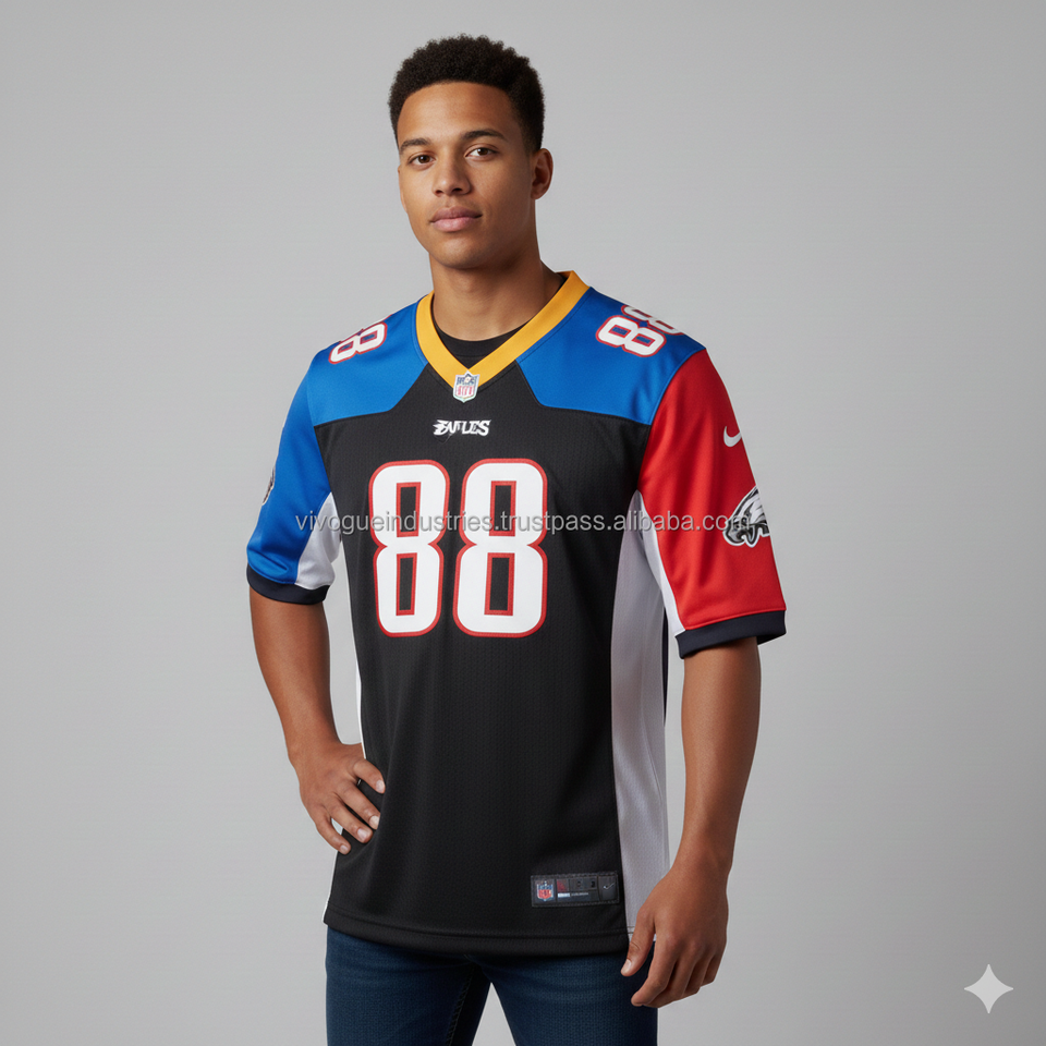 เสื้อเจอร์ซีย์อเมริกันฟุตบอลทรงหลวม ระบายอากาศได้ดี แขนสั้น สีสันแบบสปลิตคัลเลอร์ สไตล์เรโทร สองสี ผลิตตามสั่ง