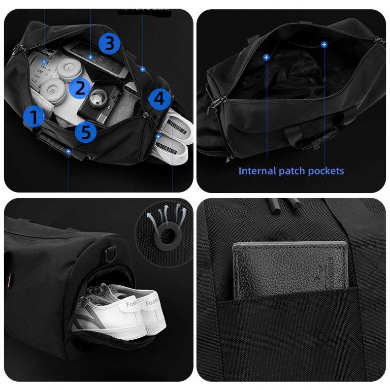 กระเป๋าออกกำลังกายแบบกำหนดเอง ความจุขนาดใหญ่ แยกส่วนเปียกและแห้ง กระเป๋าเดินทางกันน้ำ กระเป๋าฟิตเนสสำหรับผู้ชาย พร้อมช่องใส่รองเท้า
