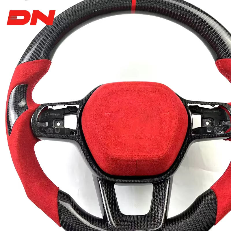 พวงมาลัยคาร์บอนไฟเบอร์หุ้มหนังสไตล์สปอร์ตสำหรับรถยนต์ฮอนด้า ซีอาร์วี เอชอาร์-วี ซีวิค รุ่นที่ 11 ไทป์ อาร์ เอฟแอล5 เอสไอ แอคูร่า อินทีกรา ฟิต