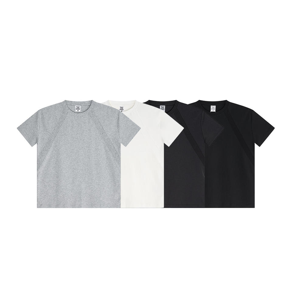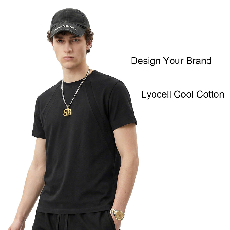 เสื้อยืดกีฬาแบบกำหนดเอง 220 กรัม เนื้อผ้าคอตตอนไลโอเซลล์เย็นสบาย เสื้อยืดผู้ชายสีพื้นแบบต่อผ้า ทรงออกกำลังกาย คอกลม สำหรับผู้ชาย
