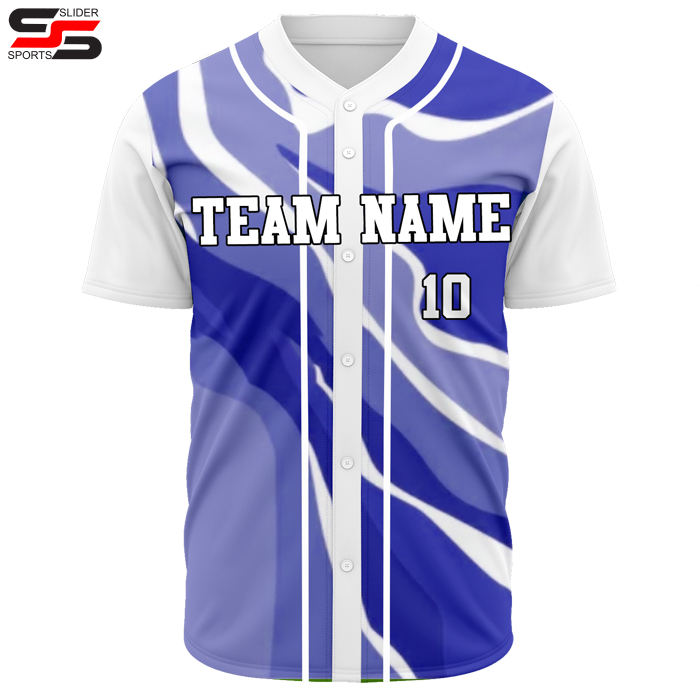 ชุดเสื้อเจอร์ซีย์สำหรับเล่นเบสบอลทีมกีฬาแห้งเร็วผ้าโพลีเอสเตอร์ซับลิเมชันมีกระดุมพิมพ์100%