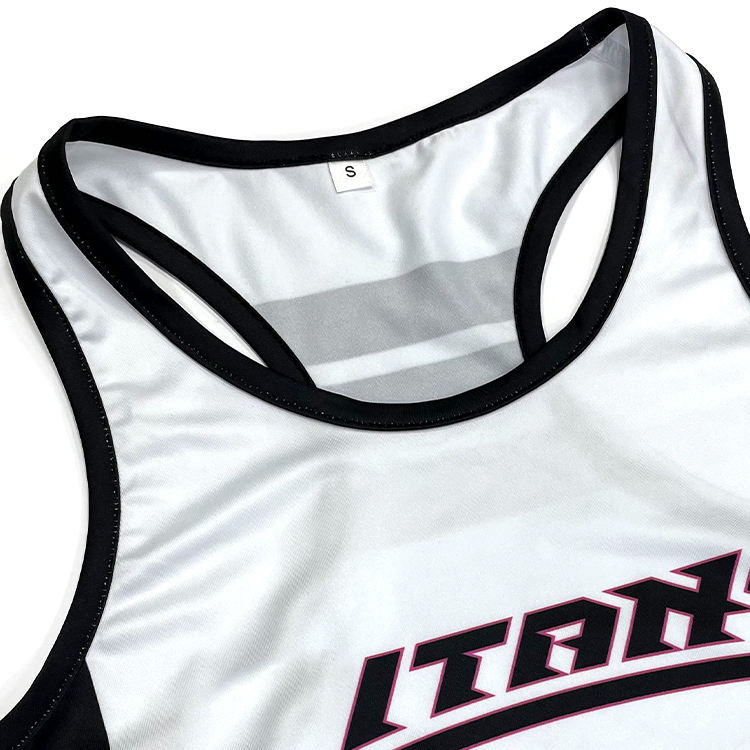 เสื้อกล้ามและกางเกงขาสั้นชุดออกกำลังกายพิมพ์ลายซับลิเมชันชุดกีฬาออกแบบได้ตามต้องการ