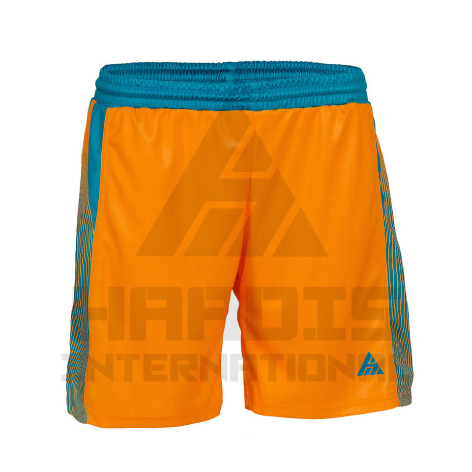 กางเกงขาสั้นกีฬาการฝึกอบรมแบบกําหนดเองขายส่งโลโก้ระเหิดพิมพ์ตาข่ายกางเกงขาสั้นบาสเกตบอลผลิตในปากีสถาน