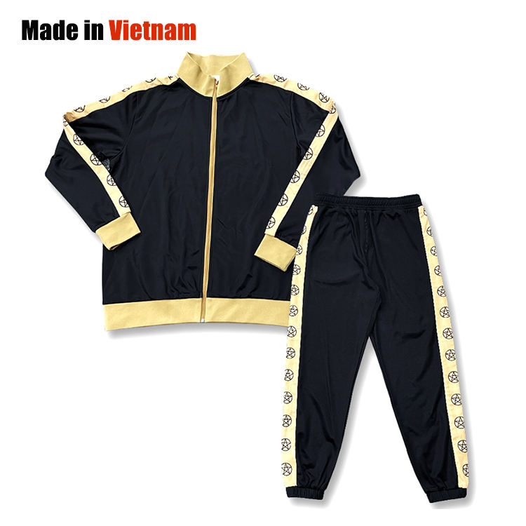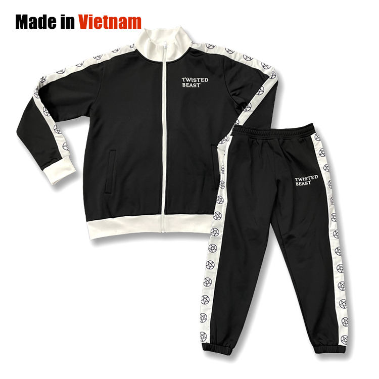 ชุดกีฬาฤดูใบไม้ผลิแบบกันลม ไซส์ใหญ่ ผลิตในเวียดนาม รับผลิตแบบ OEM ออกแบบแจ็คเก็ต ชุดสองชิ้น พิมพ์ลายแบบซับลิเมชั่น
