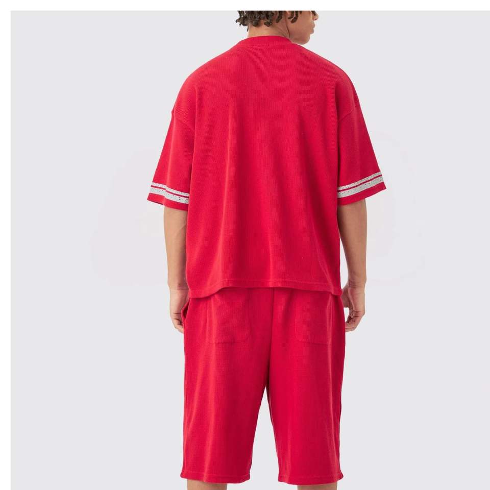 Custom Sporty Two Piece Unisex T-Shirt & Shorts Set Oversized Crew Neck Knitted Front Logo Summer Streetwear OEM Clothing