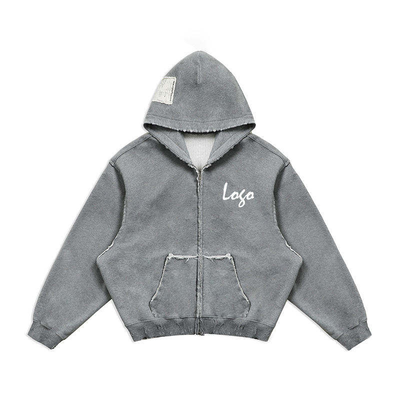 Custom Spray Label Graffiti Printed Logo Embroidered Oversized Pullover Hoodie 100% Cotton Heavyweight French Terry Cropped