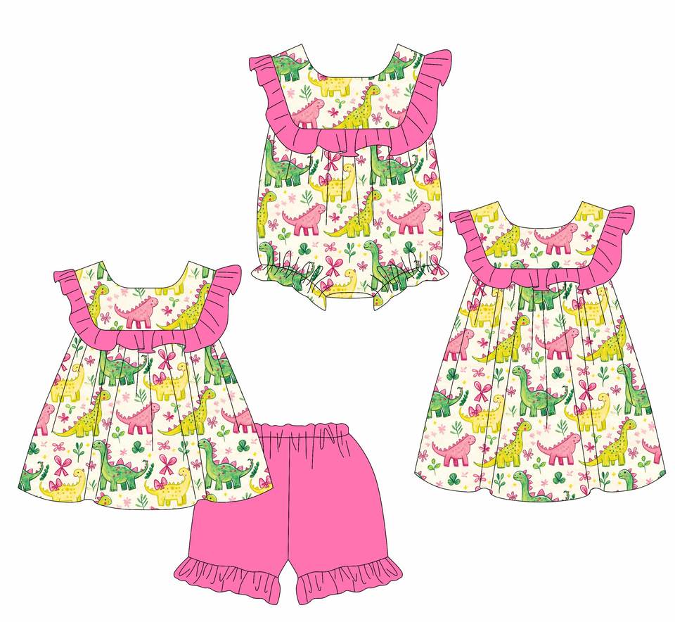 ชุดเดรสเด็กผู้หญิงลายไดโนเสาร์ ผ้าวอร์สเต็ด ระบายอากาศดี สไตล์ลำลอง สำหรับฤดูใบไม้ผลิและฤดูใบไม้ร่วง ชุดรอมเปอร์เด็กทารกแบบใหม่ ชุดสำหรับพี่สาวน้องสาว