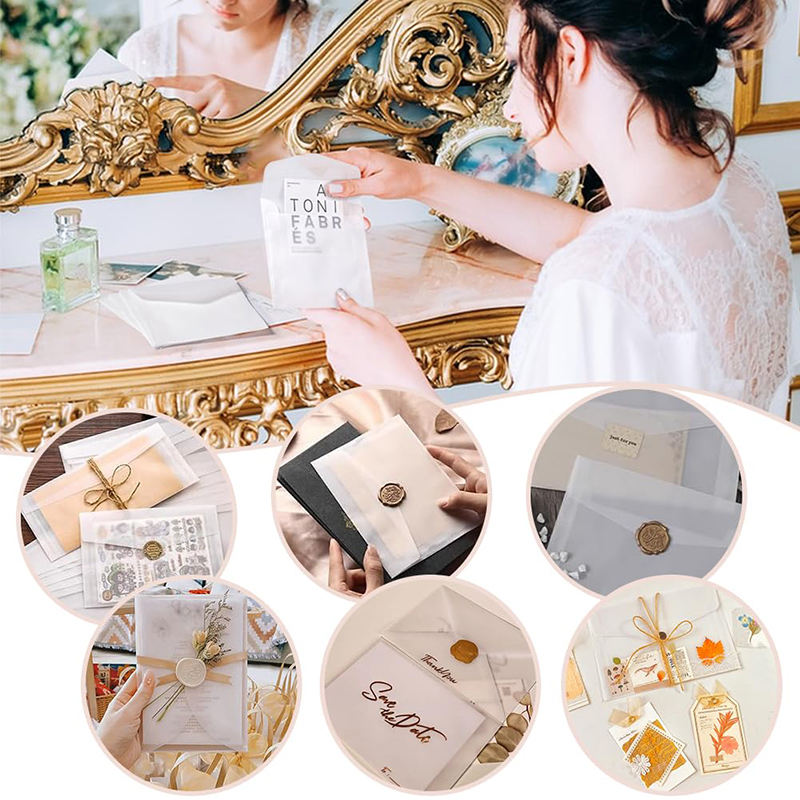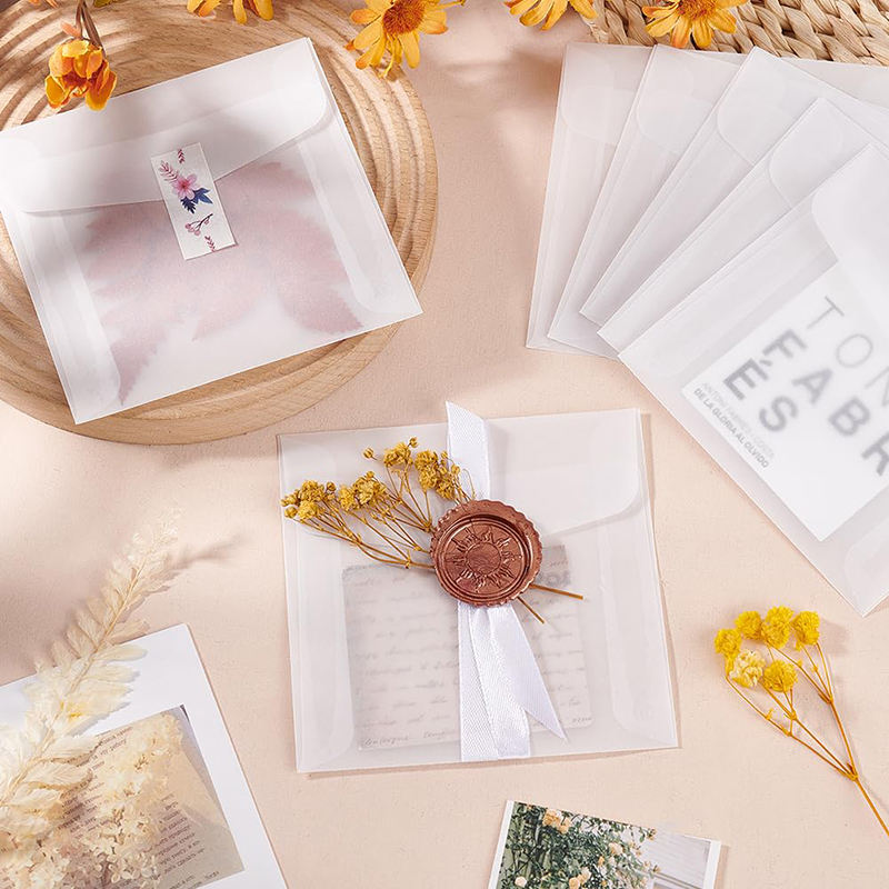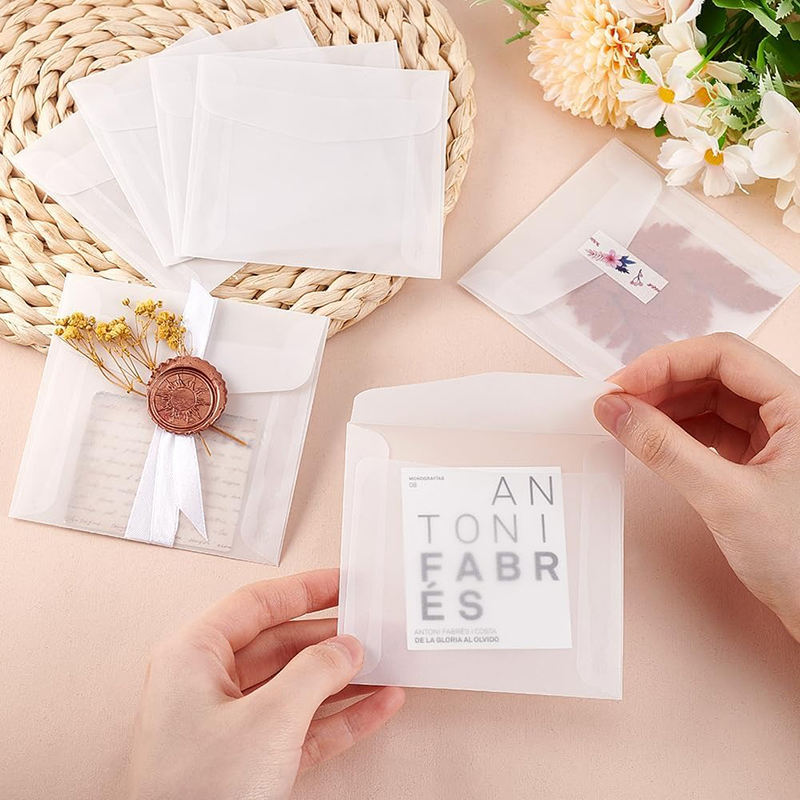 ซองจดหมายสี่เหลี่ยมแบบกำหนดเอง ถุงกระดาษสำหรับงานแต่งงาน การ์ดอวยพร งานฝีมือ กระดาษแก้วใส ถุงกระดาษกันไขมัน