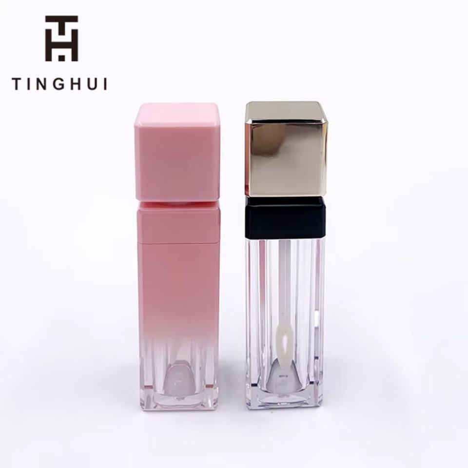 หลอดลิปบาล์มพลาสติกทรงสี่เหลี่ยมแบบกำหนดเองพร้อมฝาเกลียวและแปรง บรรจุภัณฑ์เครื่องสำอางเปล่า